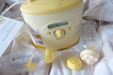 Feline werd geboren en ik was goed voorbereid op het geven van borstvoeding dus ik deed alle dingetjes die worden aangeraden. Zoals het aanleggen van je kindje in het eerste uur na de bevalling, en het hebben van veel huid-op-huid contact. Ik was wel erg ziek van de ingreep, dus ik begon pas 12 uur na de geboorte met kolven. Gelukkig had ik van Medela de Symphony kolf te leen gekregen met het speciale PLUS programma. Dit programma is nieuw en bootst de drink-techniek van een premature baby na. Een kolfsessie duurt 15 minuten en hiermee kolf je de eerste dagen zo’n 8-10 keer per dag. Dit plus programma pas je een aantal dagen toe, tot de melkproductie voldoende op gang komt. Daarna kolf je enkel wanneer dit nodig is (bijvoorbeeld als bijvoeding of om een melkvoorraad op te bouwen voor de vriezer). Dit programma is een soort powerboost om je melkproductie goed op te wekken. Ook als je geen premature geboorte hebt, kan dit enorm bevorderlijk werken voor je melkproductie. Zeker na een keizersnede kan dit helpen omdat na een keizersnede de melkproductie soms meer tijd nodig heeft om op gang te komen.